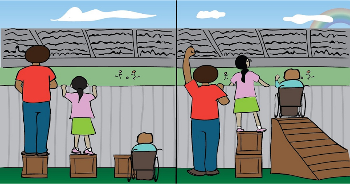 How do we understand how transportation systems both contribute to and address inequities and inequality? What kind of transportation access do you have in your community? Who makes decisions about mobility in your hometown? How are people “prevented from reaching their full potential due to transportation-related issues” where you live? As Friend Hal says, “If we believe in Equality, we must work for Justice.” Without justice, there can be no equity.