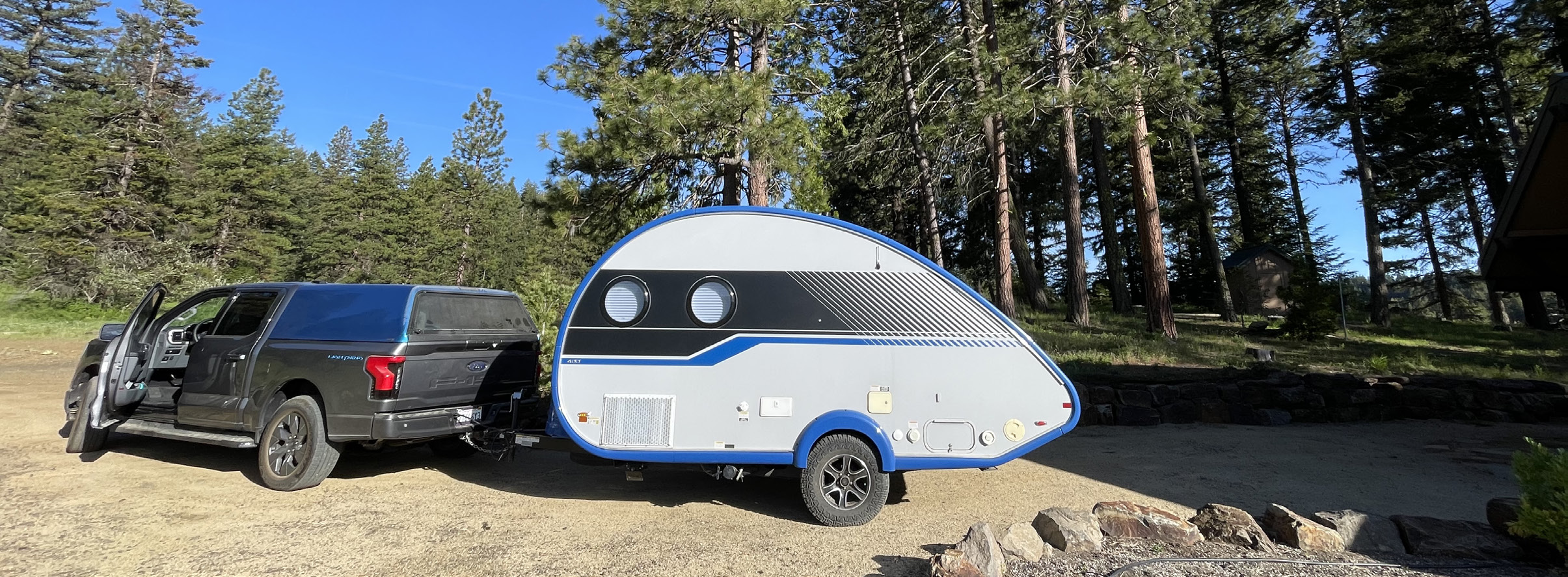 And now here we are, living into this Leading. It has been only two years since we heard the Call on that day when we were six thousand miles apart but linked in a shared future we were just discerning. We now live in a solar teardrop camper towed by an electric truck. The three of us are visiting Quaker Meetings, Yearly Meetings, and Friends, talking about Earthcare and how we might bring about a hopeful future for us all, how we can move into Right Relationship with ourSelves. We will continue to work in this nomadic way until we feel Released and Called into the next container for our work.